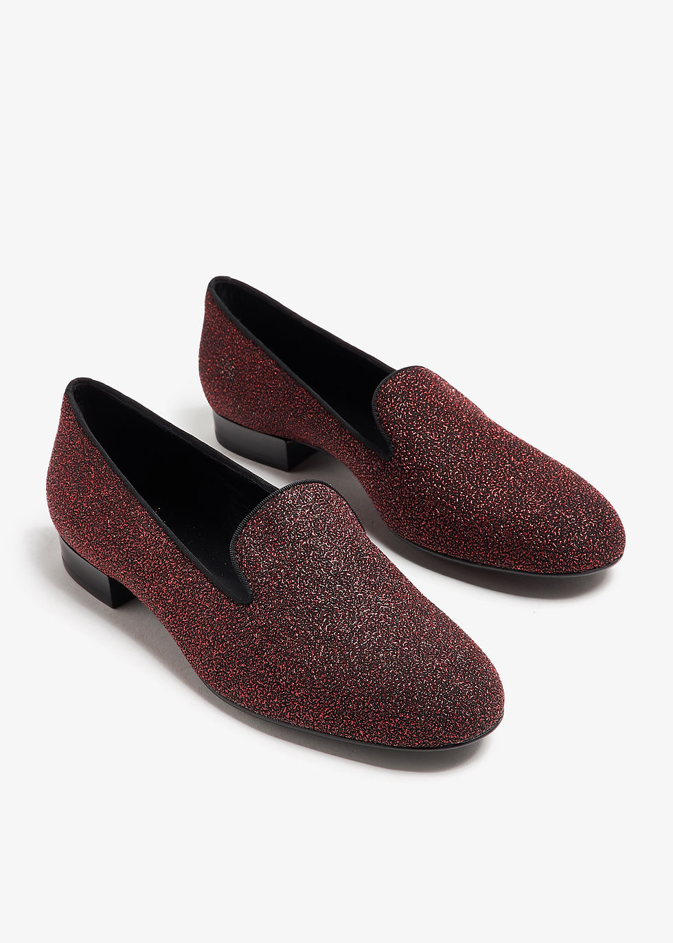 Saint Laurent Pre-Loved Glitter Smoking loafers Red Leather Women